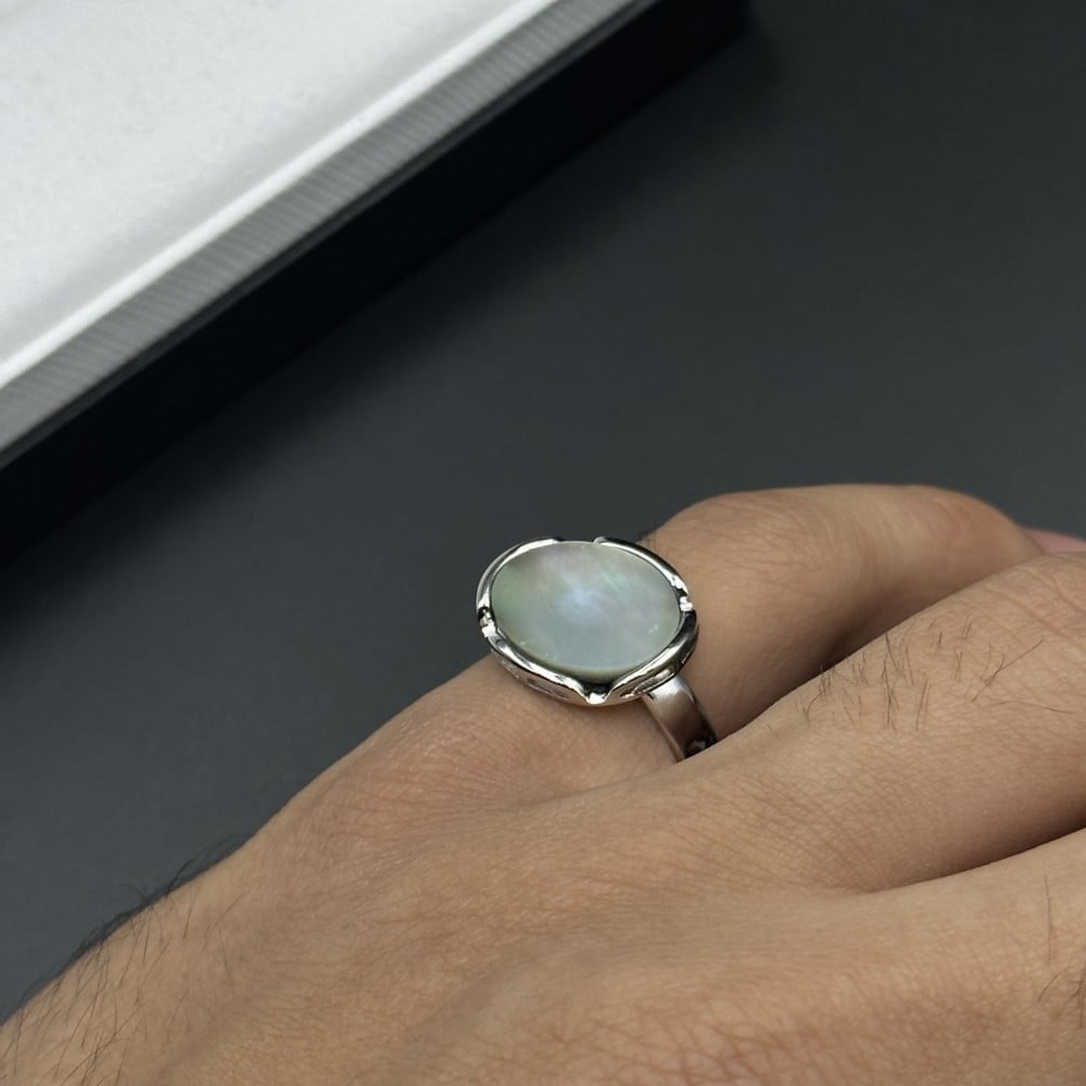 - مصنوع من الفضة النقية عالية الجودة تم اختيار أجود أنواع الفضة لضمان متانة الخاتم وبريقه المميز، مع تفاصيل متقنة تجعل منه قطعة فنية فريدة.